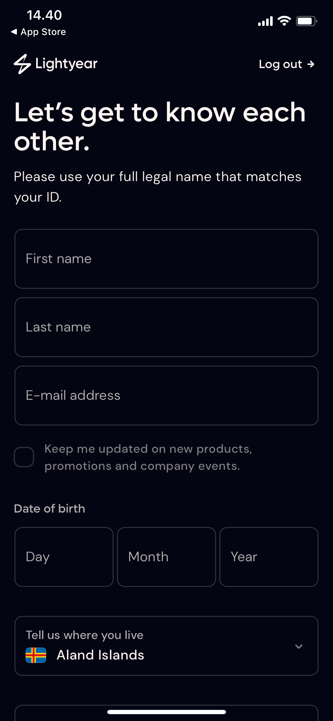 Kun kaikki tiedot on täytetty ja rekisteröityminen on vastaanotettu, pitää vielä odotella tilin hyväksyntää maksimissaan vuorokauden, kun Lightyearin yhteistyökumppani Veriff varmistaa henkilöllisyytesi.
