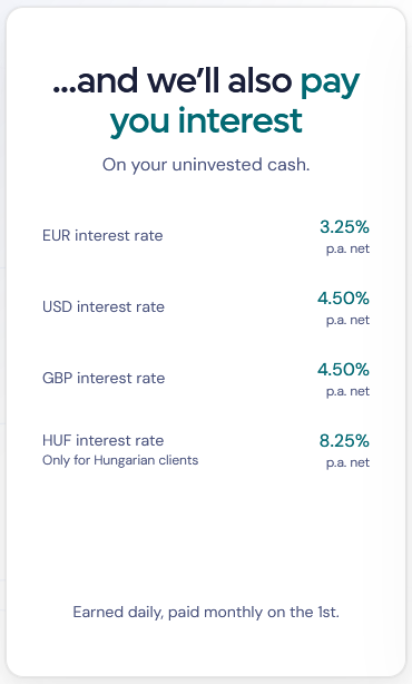 Koroista puheen ollen, kurkataan niitä ennen kuin syvennytään sijoittamiseen palvelussa. Lightyear alkaa nimittäin kerryttää korkoa varoillesi heti ensimmäisestä päivästä lähtien. Artikkelin kirjoitushetkellä euroille maksetaan 3.25%, ja punnille sekä dollareille 4.5%
