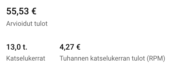 Tähän väliin pientä infoa siitä miten YouTube-tulot toimii.